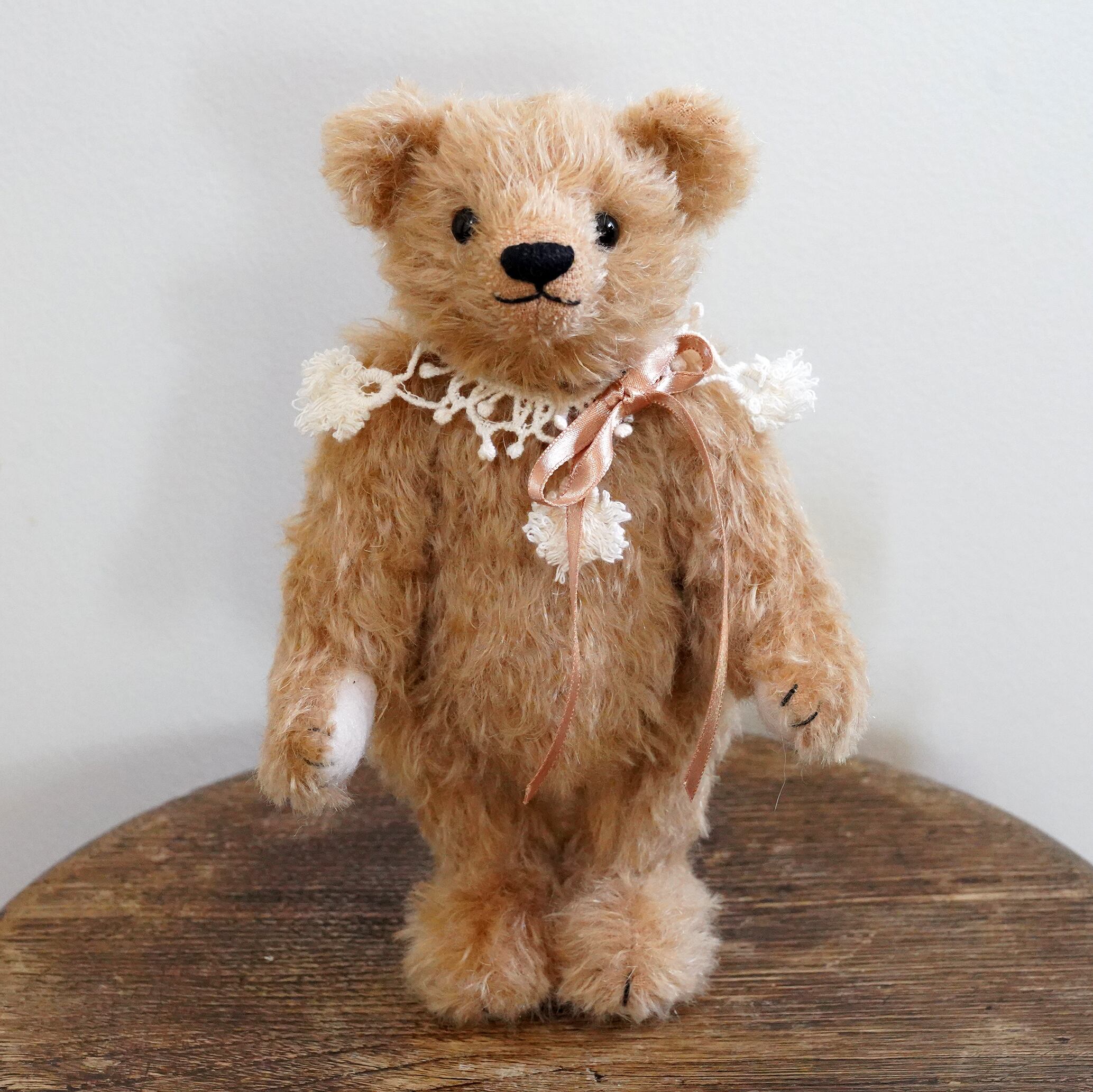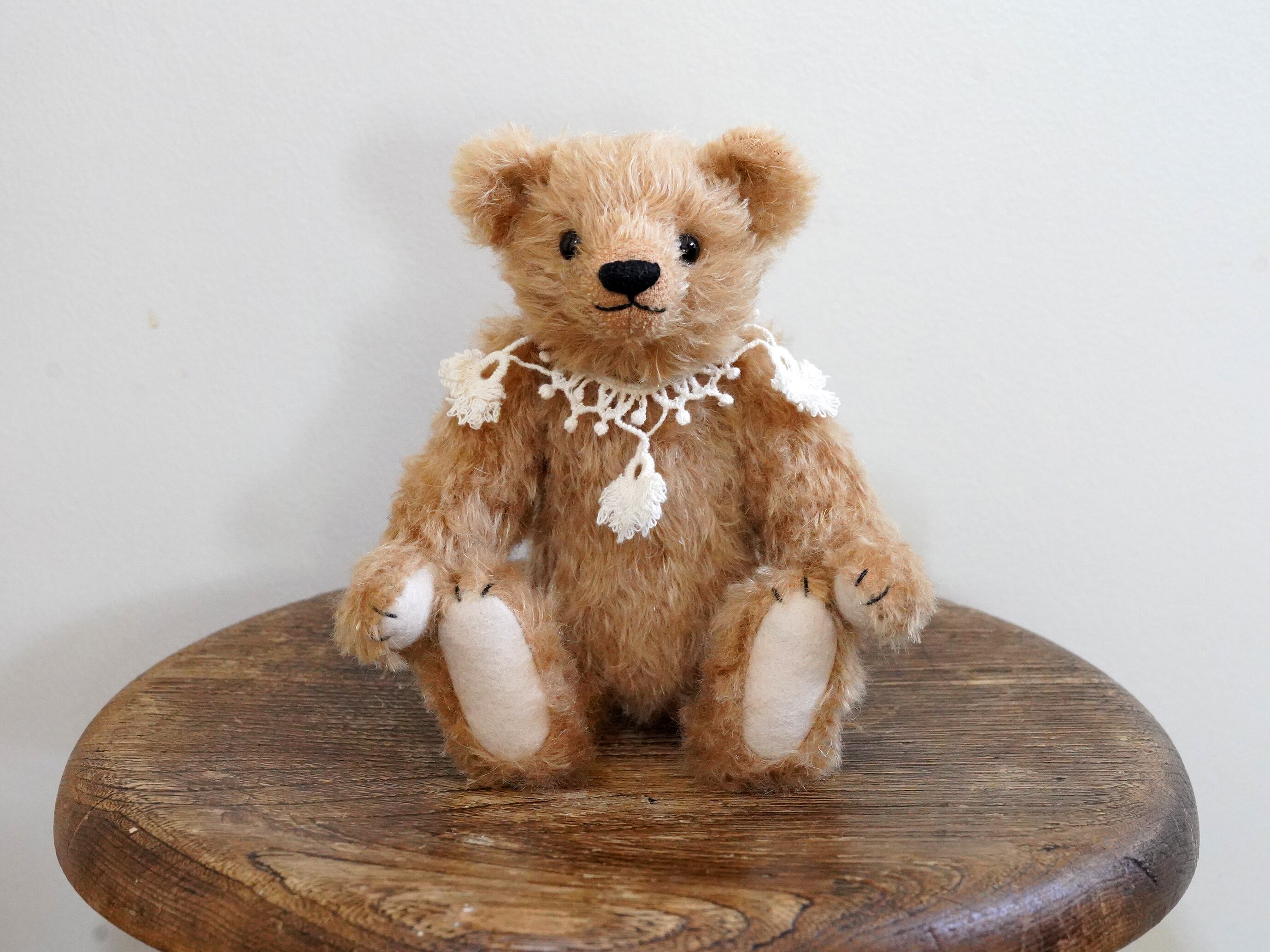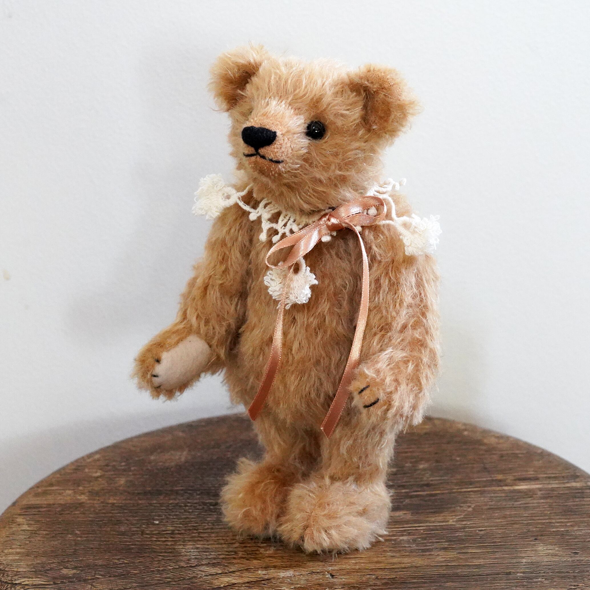 クラッシュしたキャメル色のモヘアのクラシックなテディベア です。
