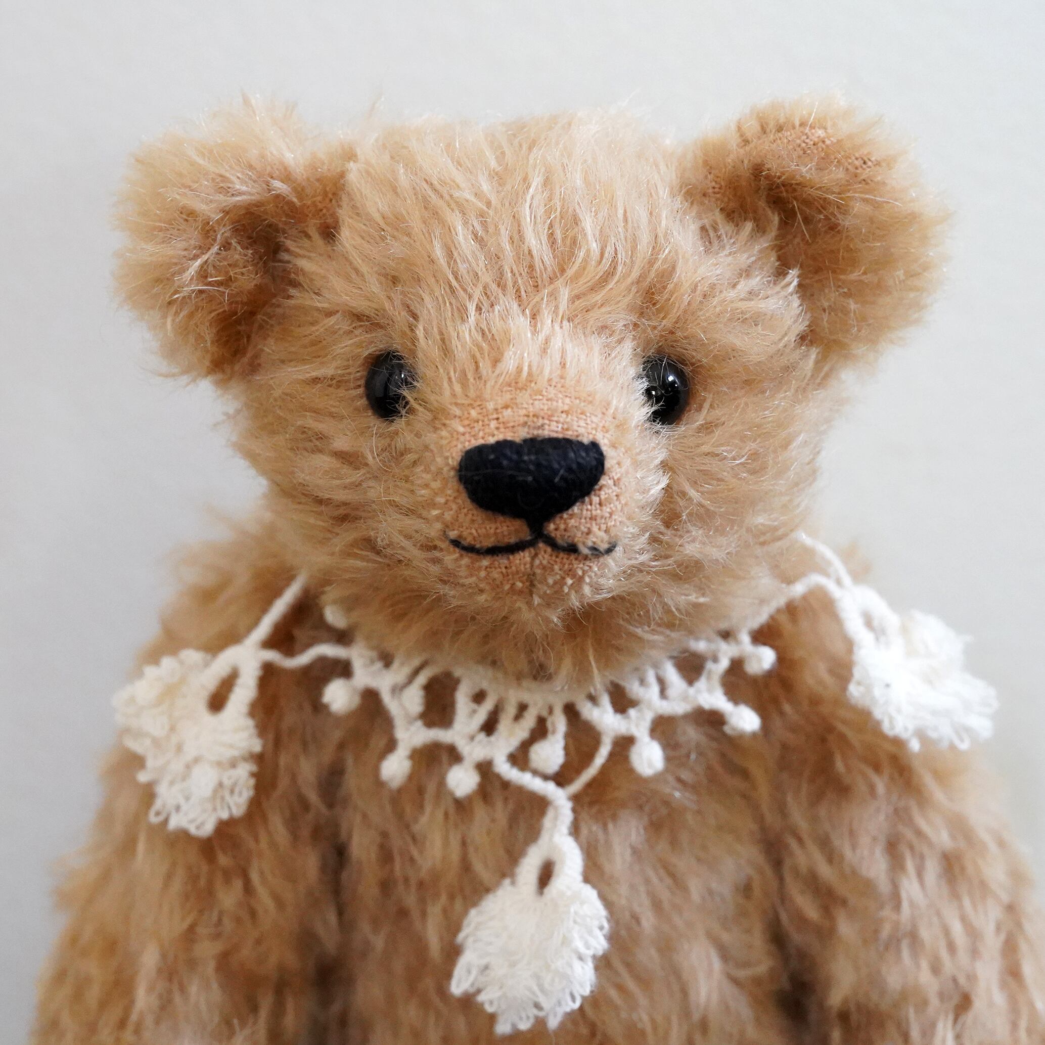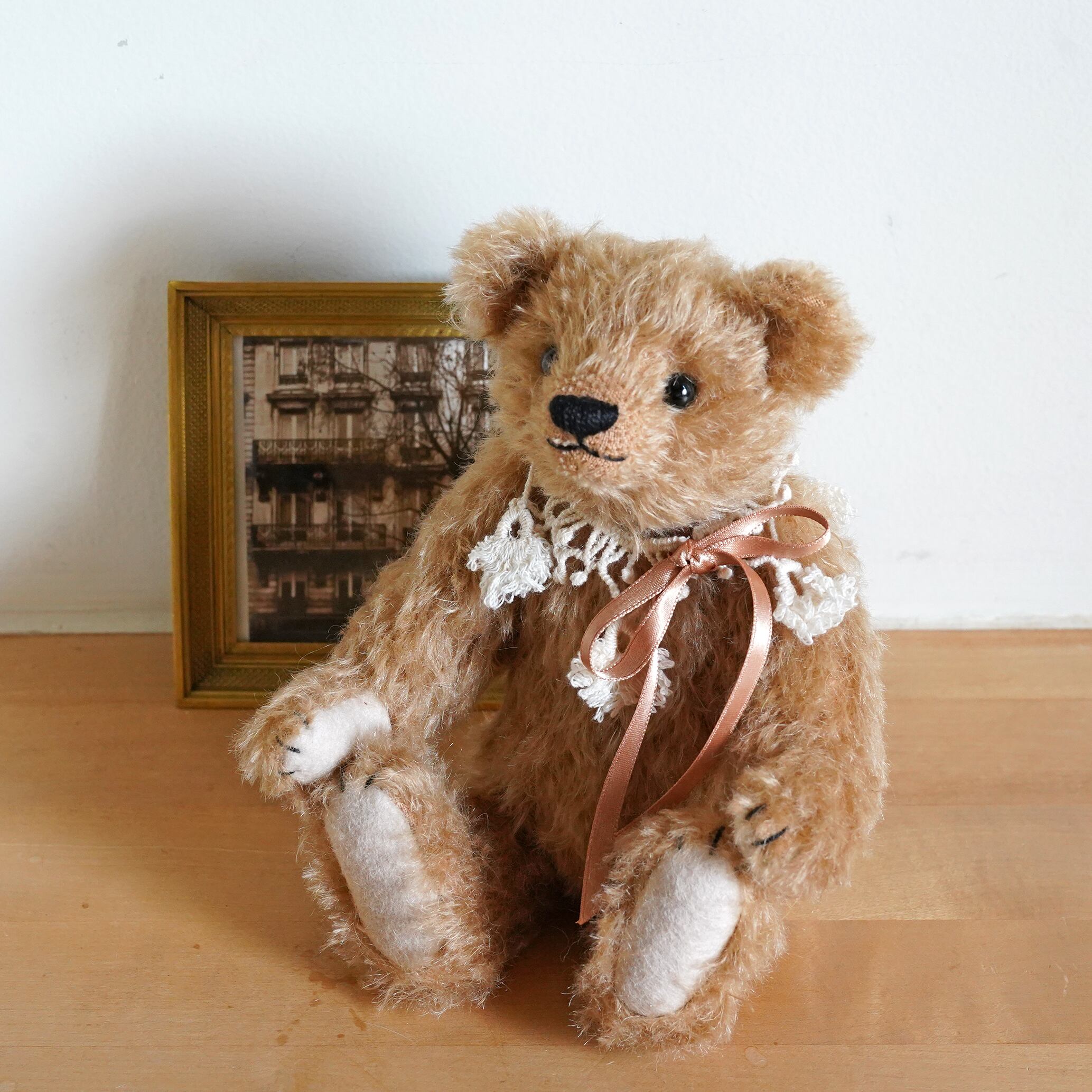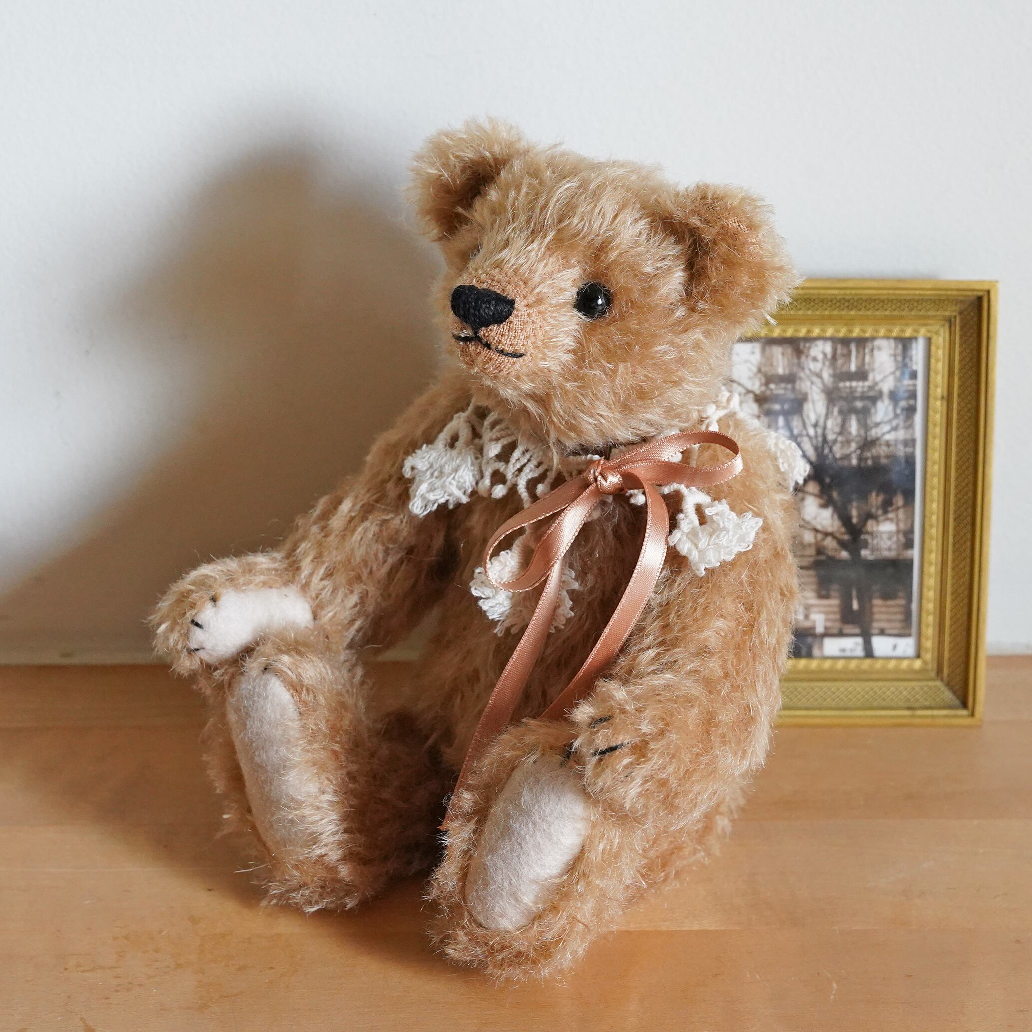 クラッシュしたキャメル色のモヘアのクラシックなテディベア です。