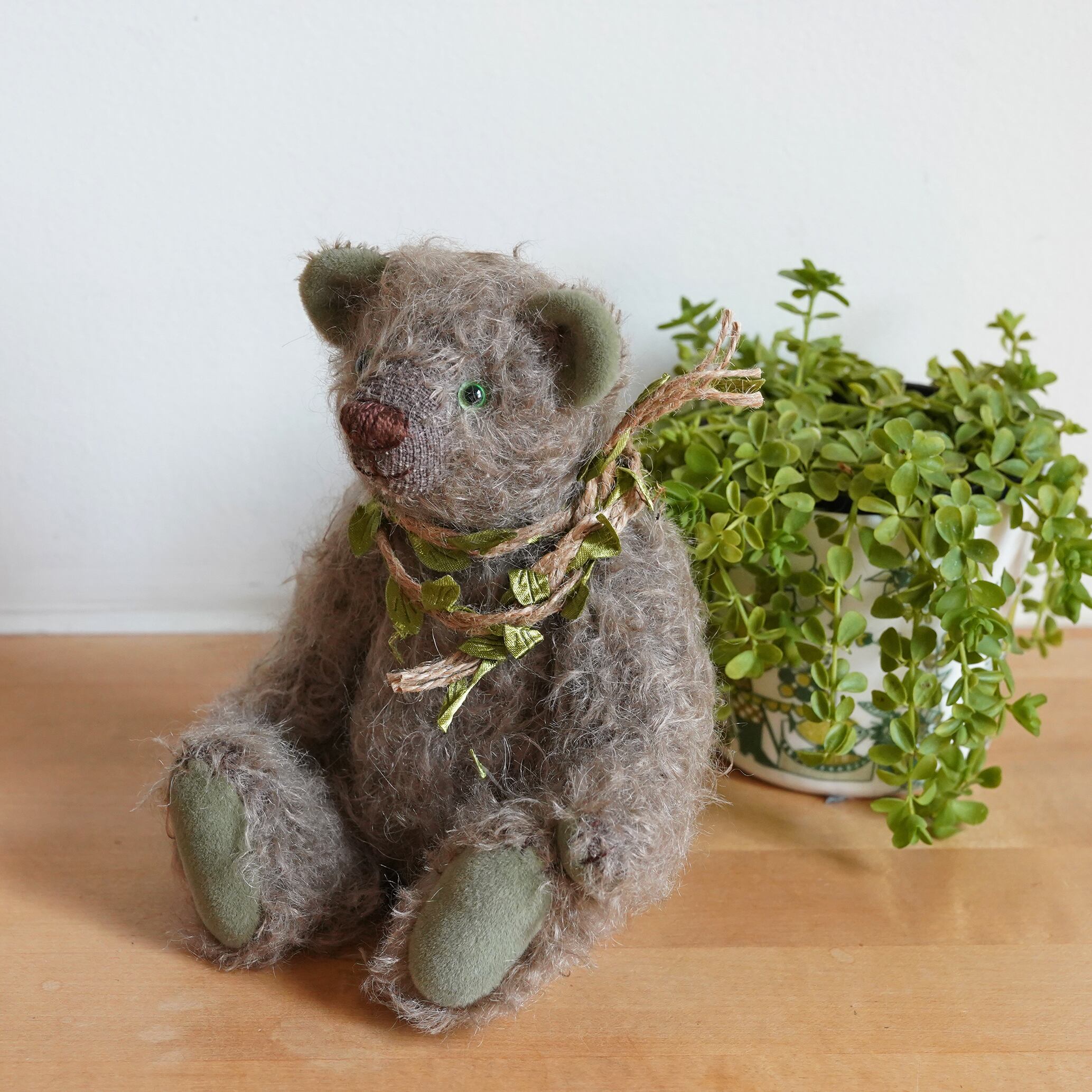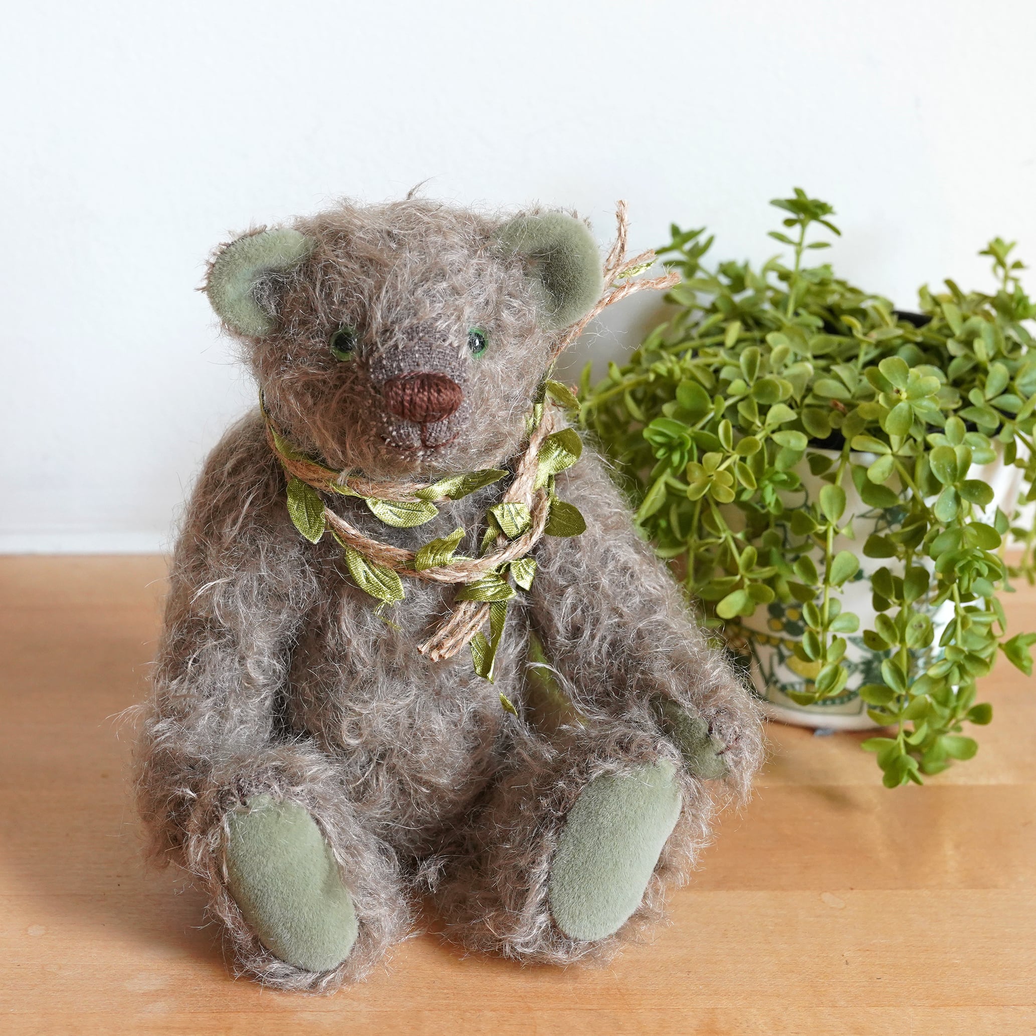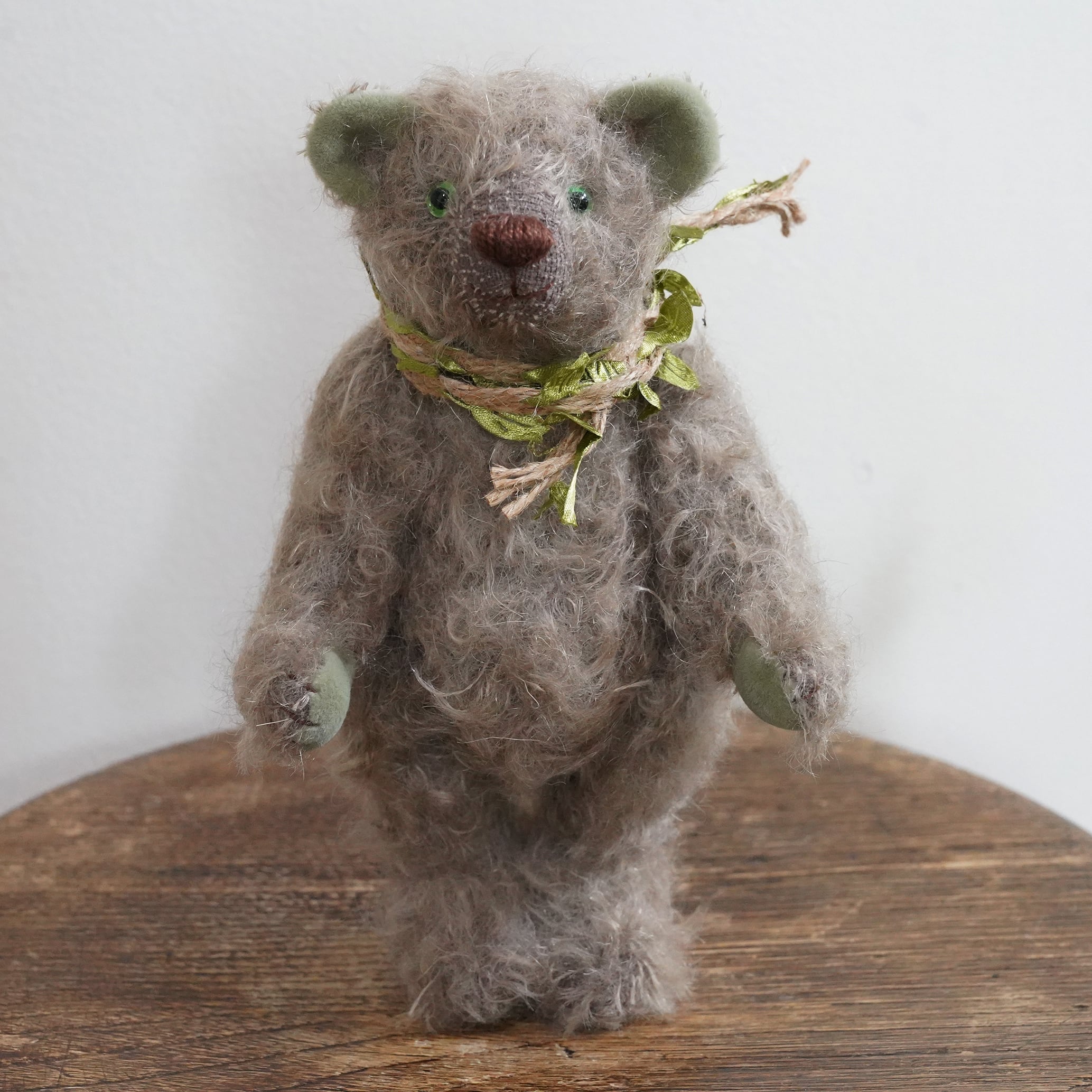 ドイツ製のスモーキーなブラウンのモヘアで作りました。