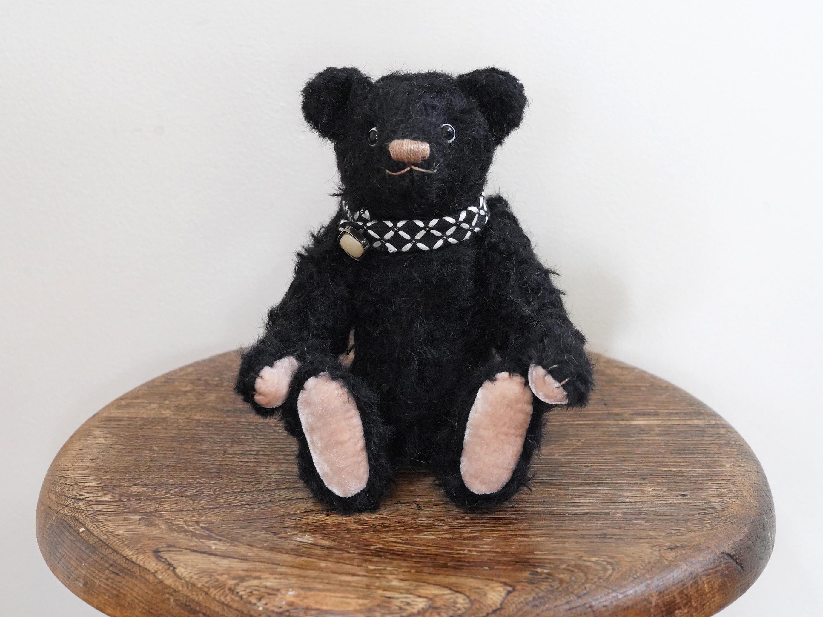 黒いモヘアにポンチ目がおどけた表情に見えて和みます。