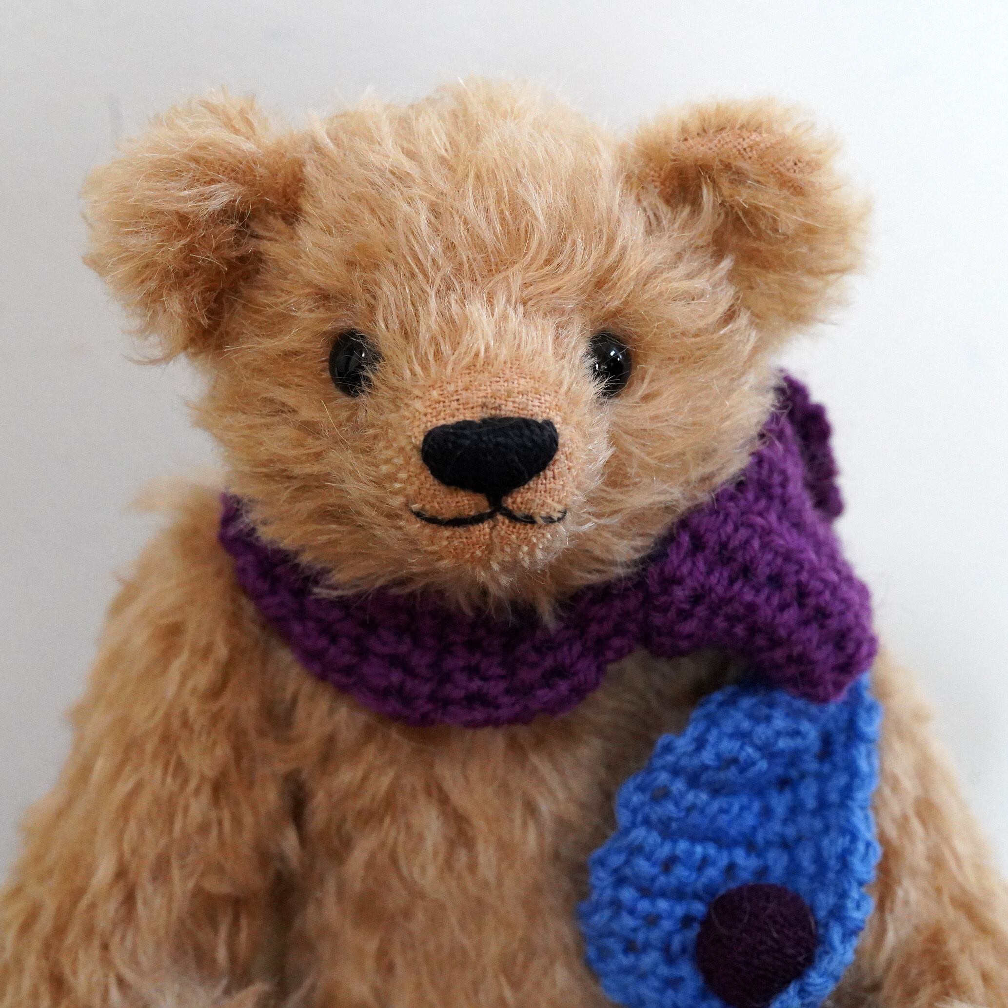 クラッシュしたキャメル色のモヘアのクラシックなテディベア です。